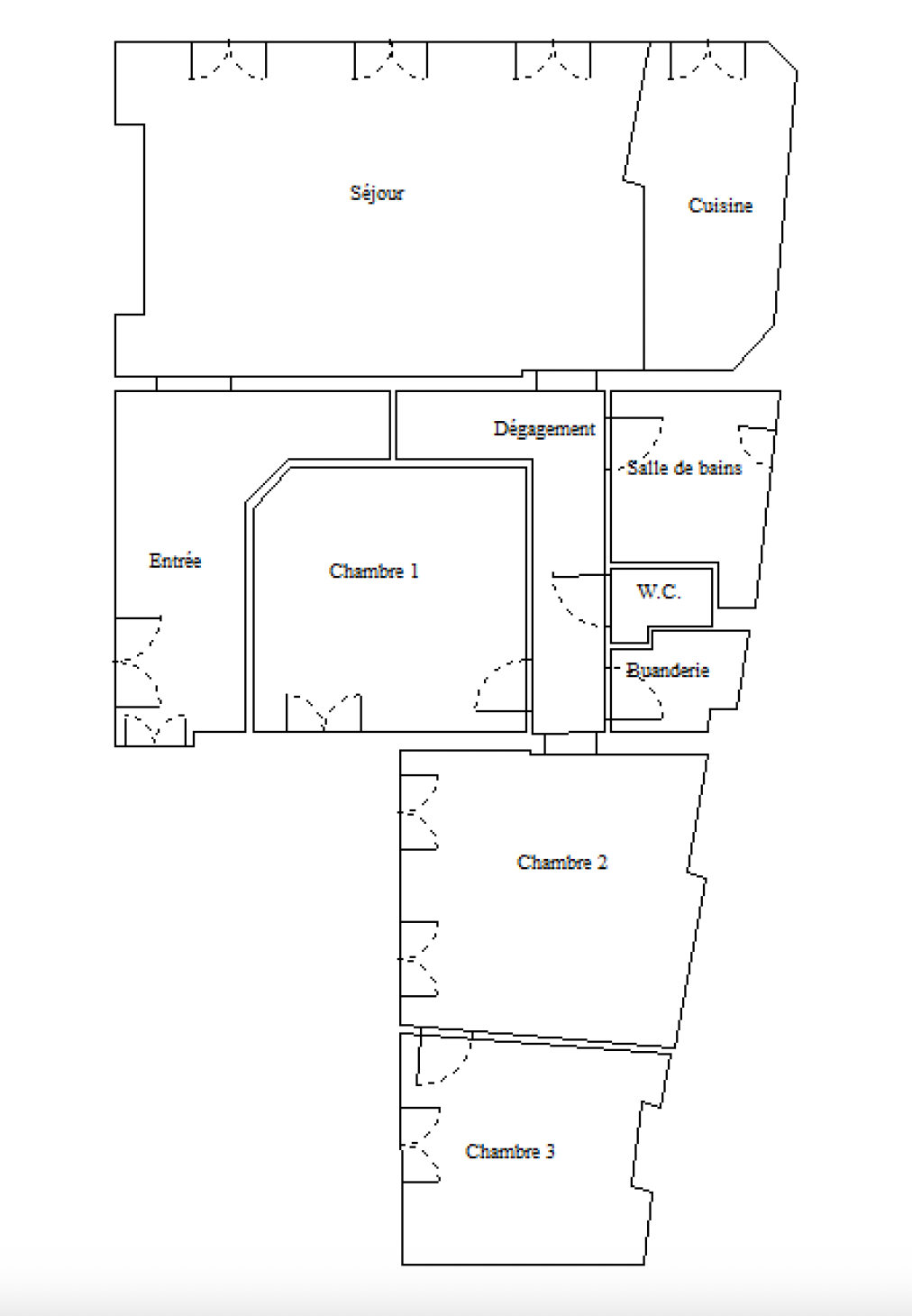 Il se compose d’une entrée lumineuse, d’un double séjour avec poutres apparentes et cuisine américaine, pour une pièce de vie d’environ 40 m², de trois chambres, d’une salle de bains, de toilettes séparées et d’une buanderie.