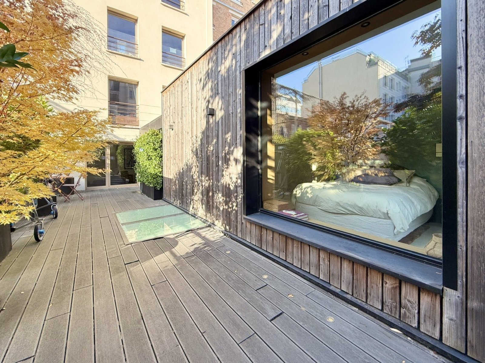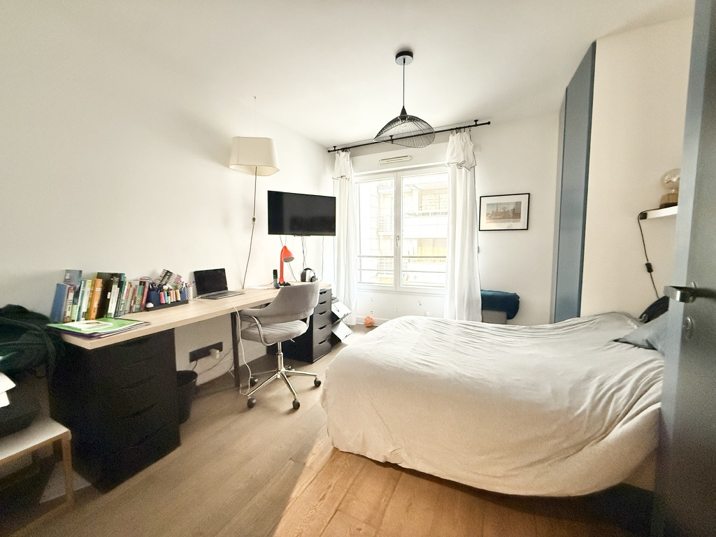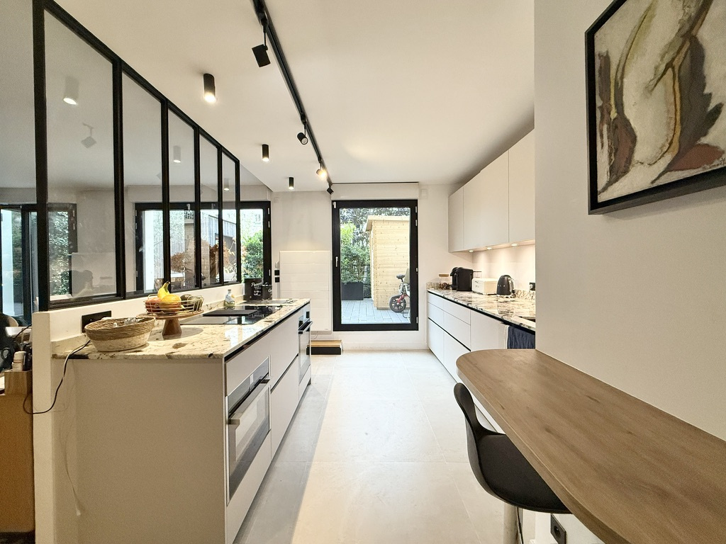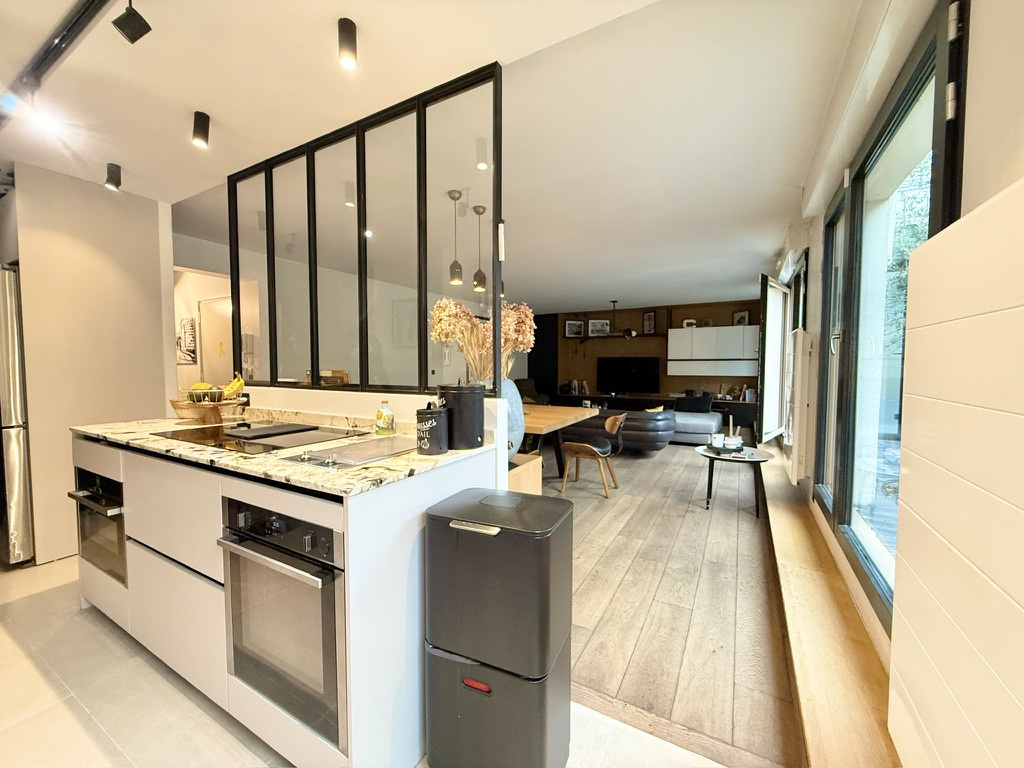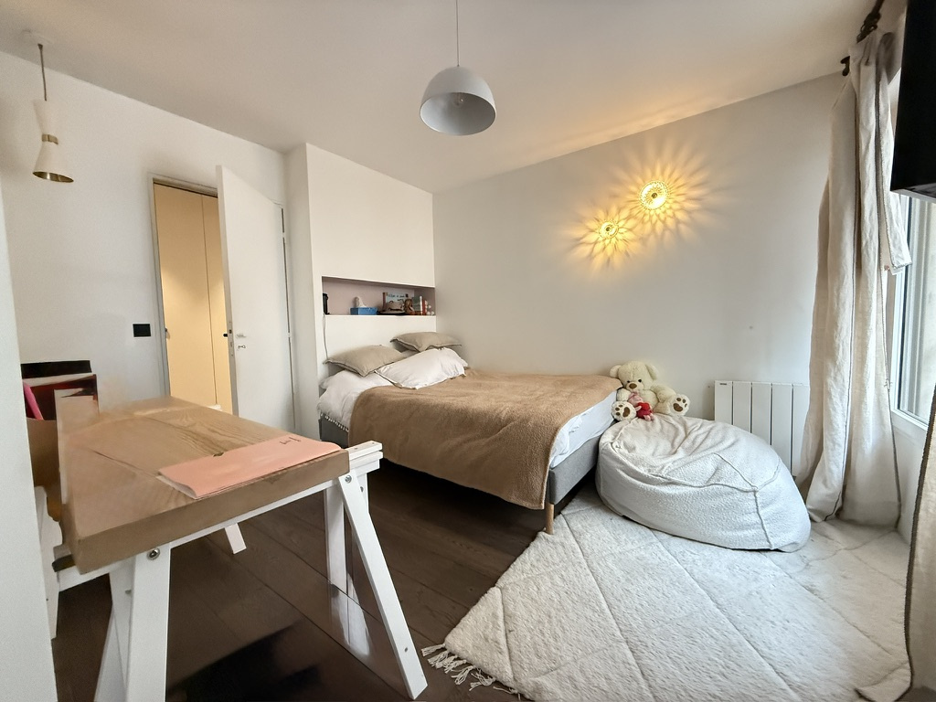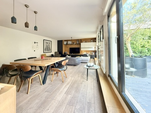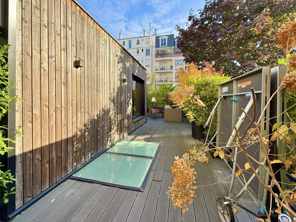 L’agence Quartiers Parisiens vous propose, au 1er étage d’un immeuble récent avec ascenseur, un appartement familial atypique avec terrasse de plain-pied de 90 m².