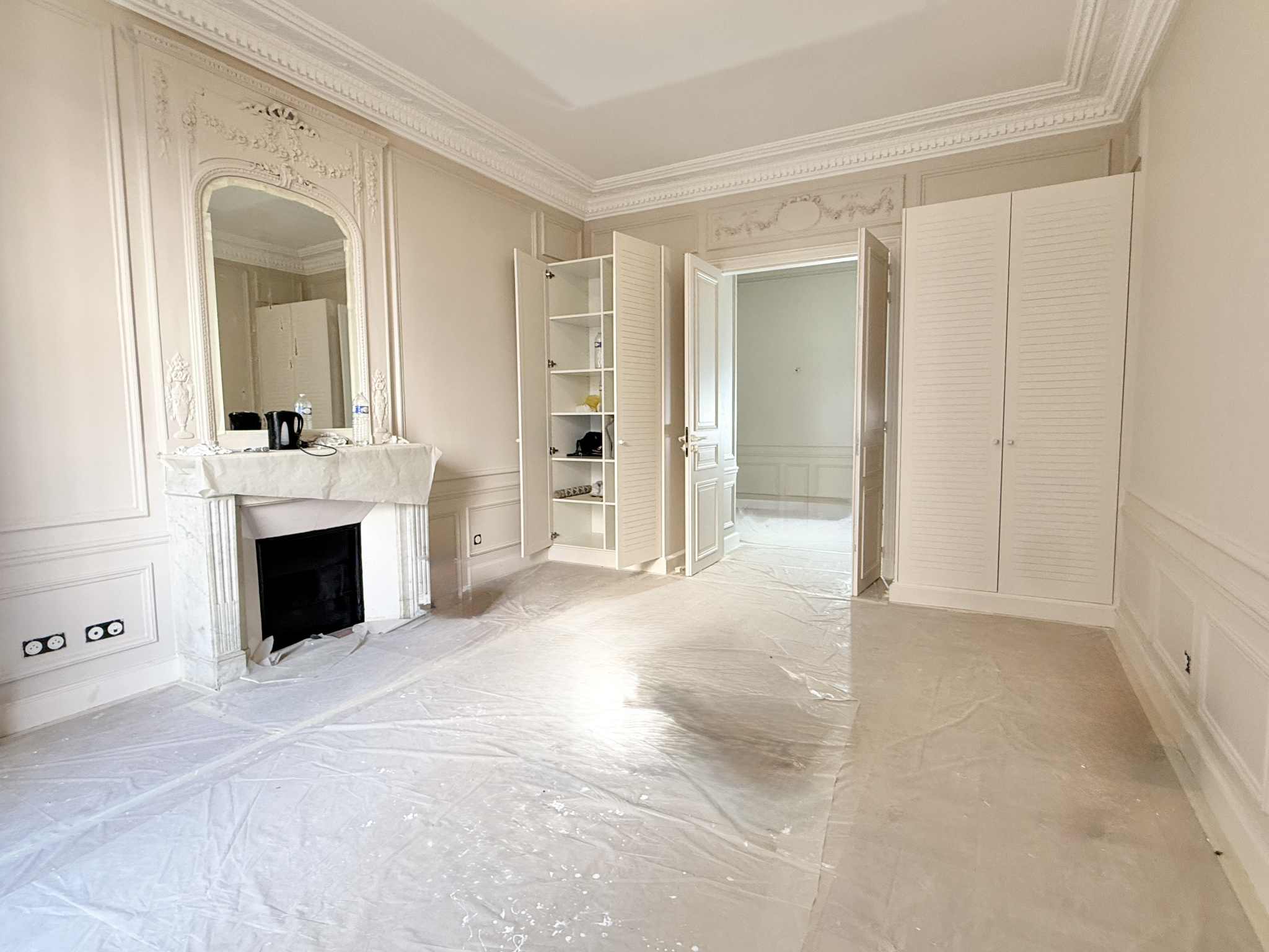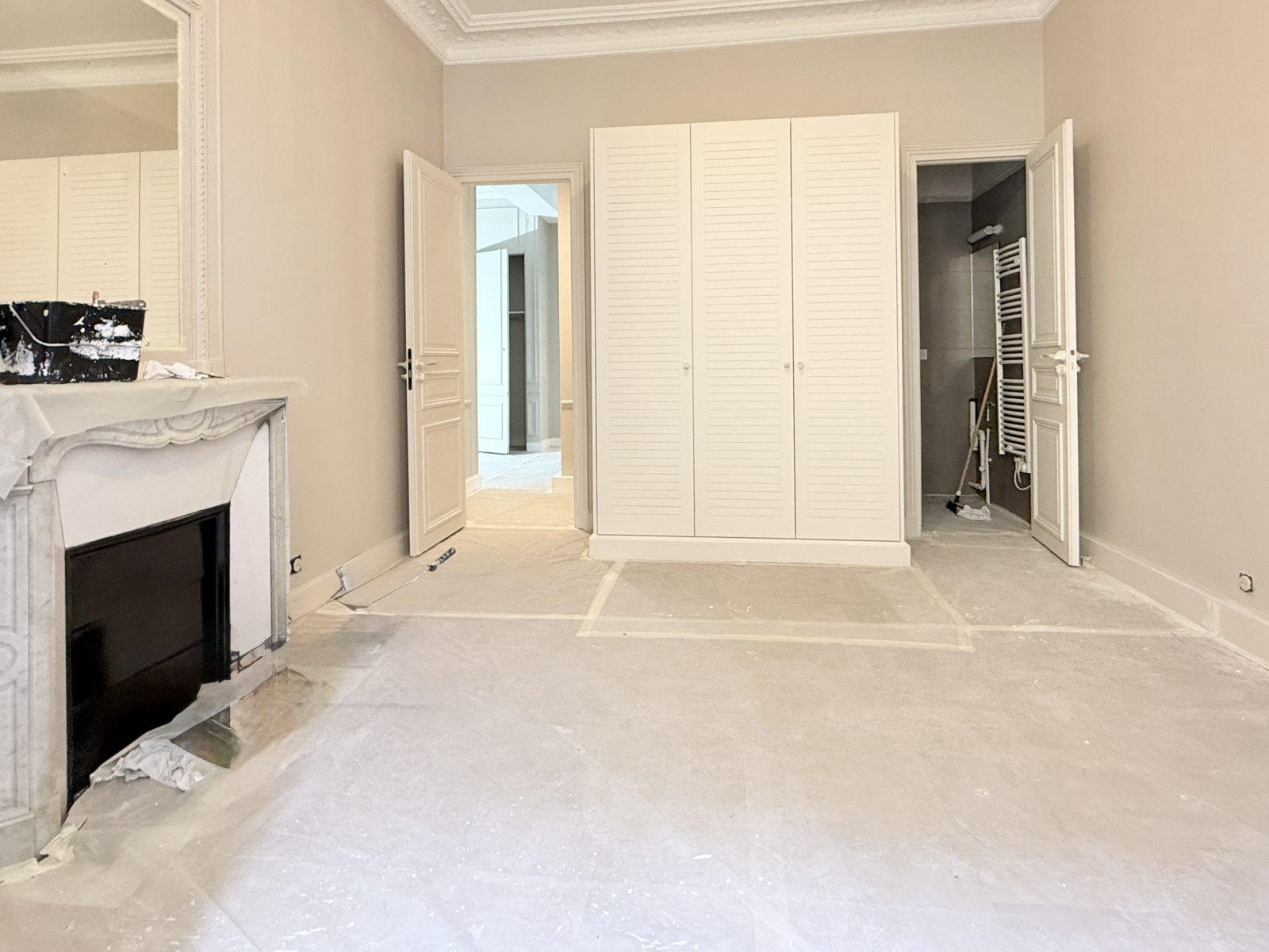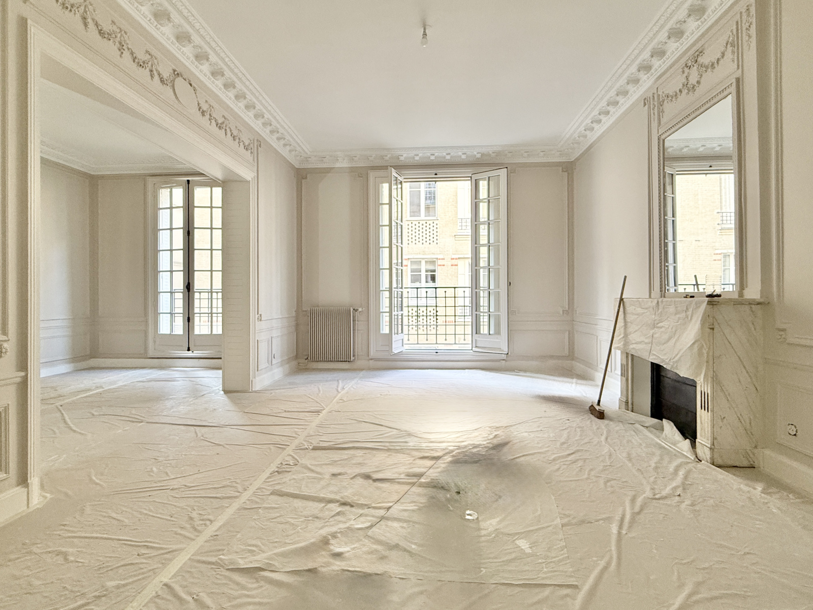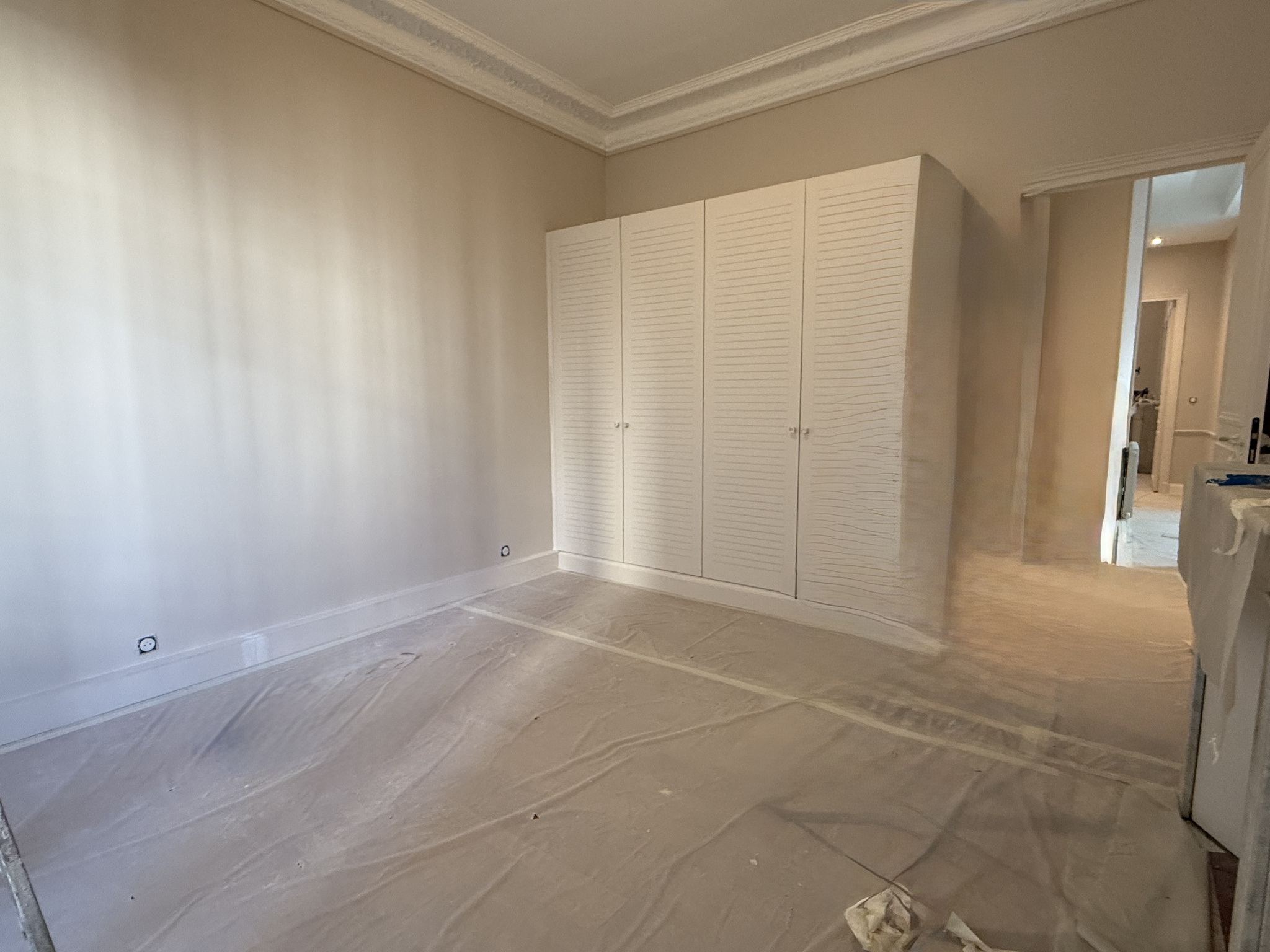 Ce bien entièrement rénové (travaux n cours) se compose d’une galerie d’entrée, une double salle de réception, une cuisine à aménager et à équiper, de 3 chambres dont une suite parentale avec salle d’eau, une salle de bains, 2 wc. Chauffage et eau chaude collectifs. Gardien, digicode, interphone.