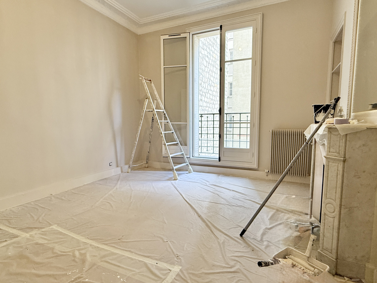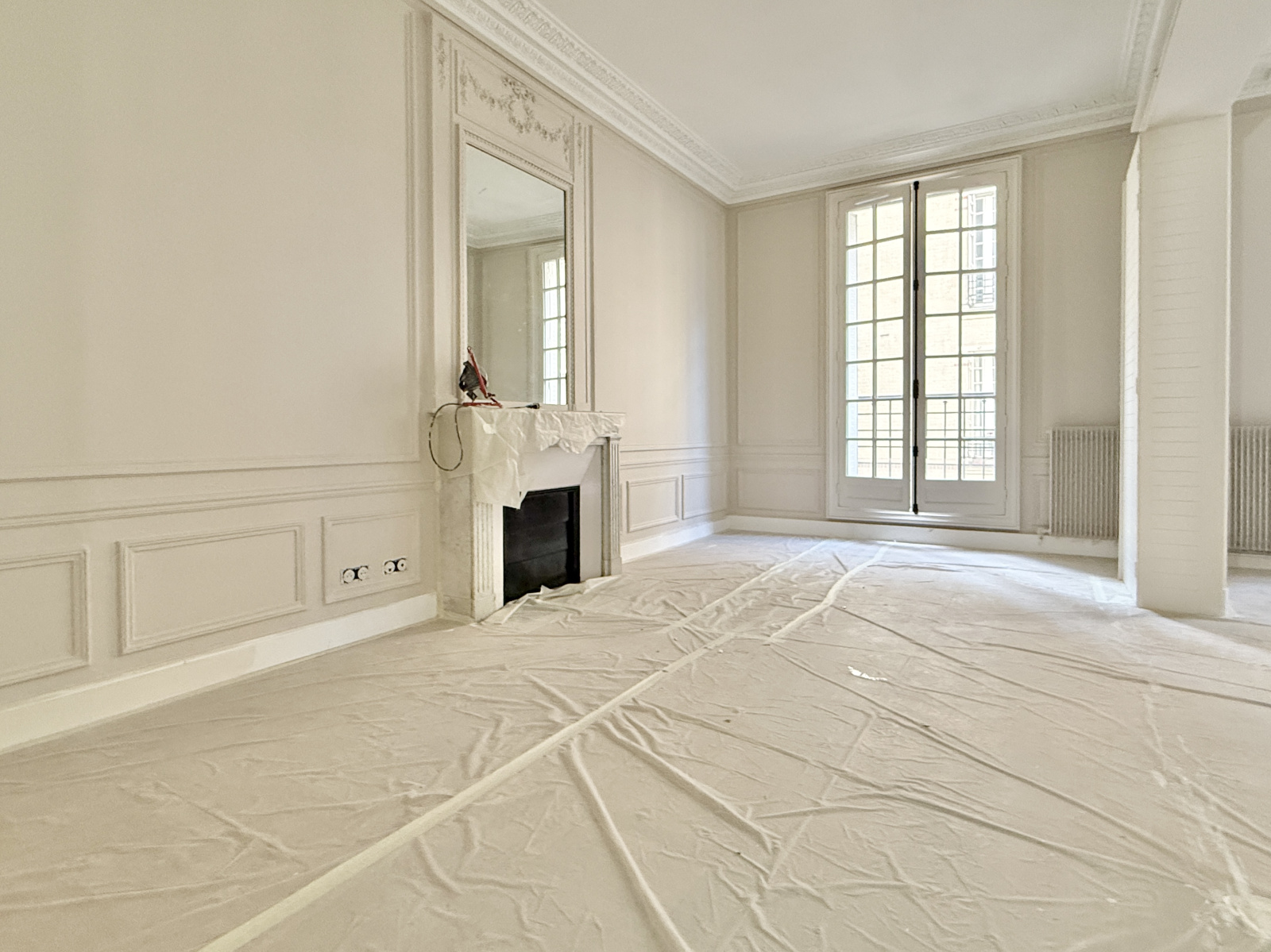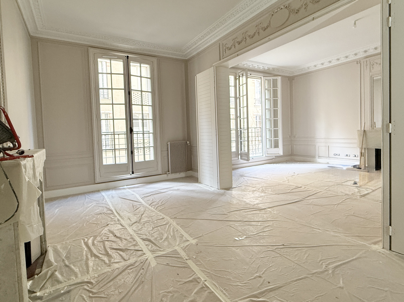 Ce bien entièrement rénové (travaux n cours) se compose d’une galerie d’entrée, une double salle de réception, une cuisine à aménager et à équiper, de 3 chambres dont une suite parentale avec salle d’eau, une salle de bains, 2 wc. Chauffage et eau chaude collectifs. Gardien, digicode, interphone.