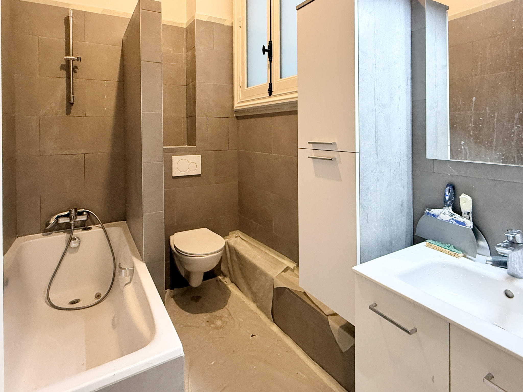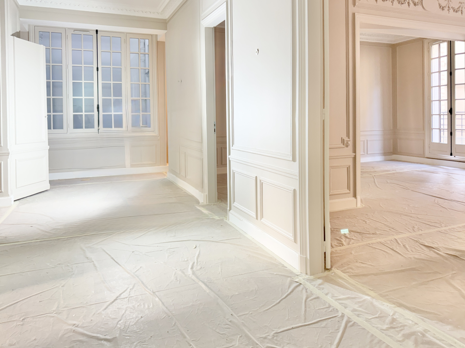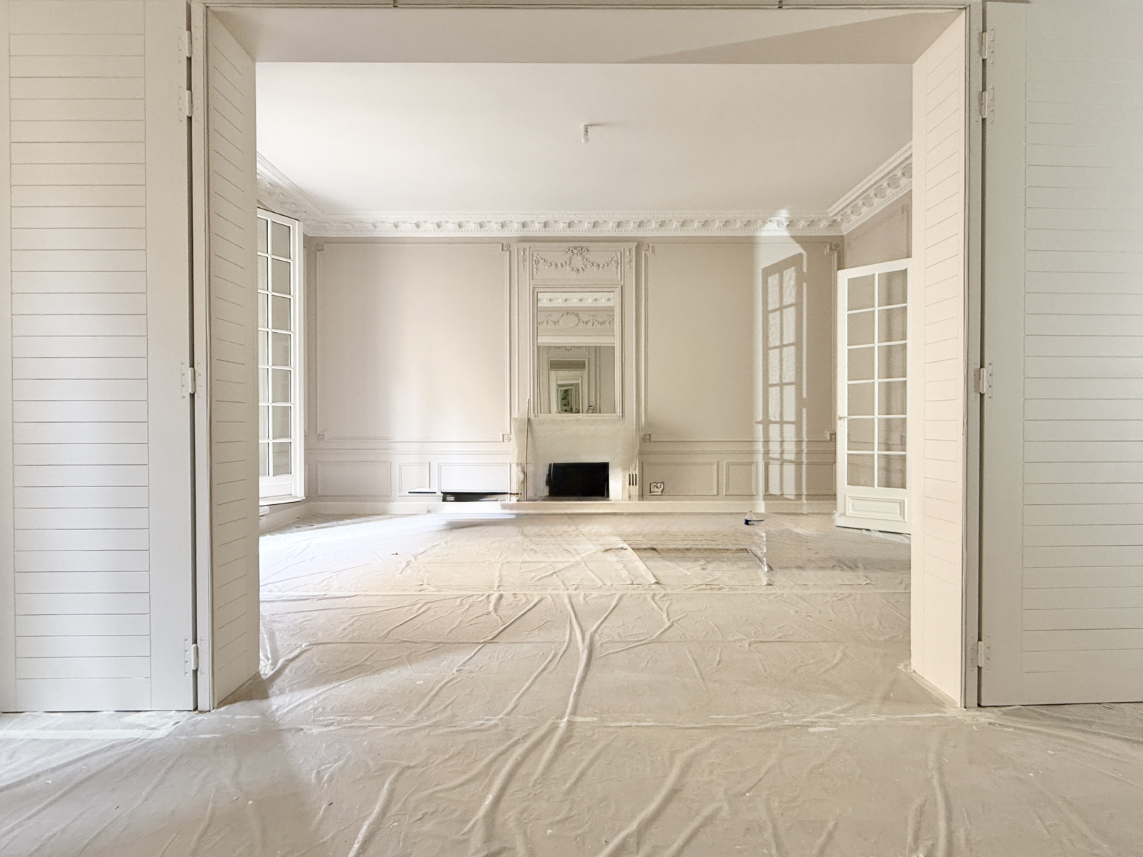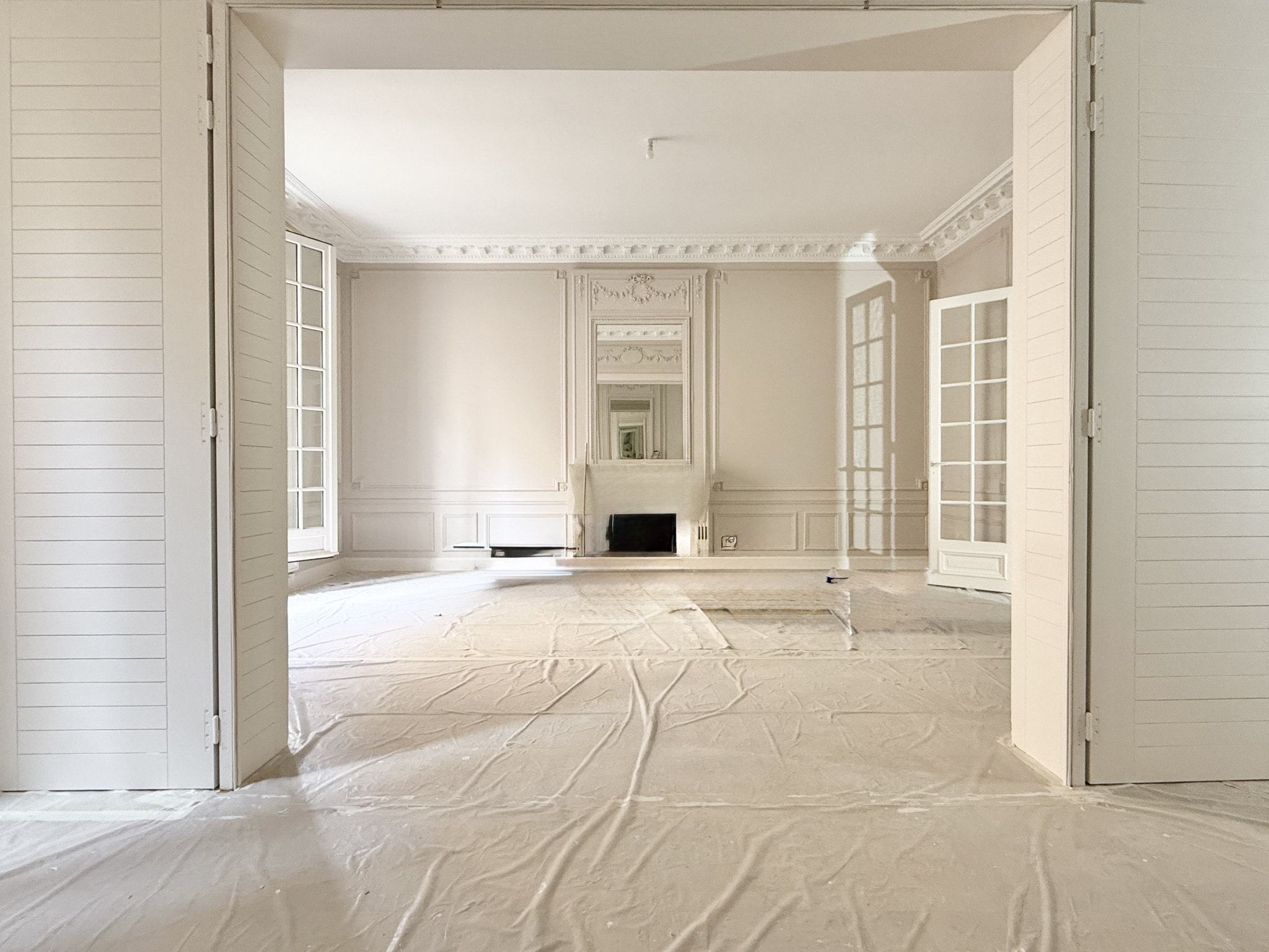 Ce bien entièrement rénové (travaux n cours) se compose d’une galerie d’entrée, une double salle de réception, une cuisine à aménager et à équiper, de 3 chambres dont une suite parentale avec salle d’eau, une salle de bains, 2 wc. Chauffage et eau chaude collectifs. Gardien, digicode, interphone.