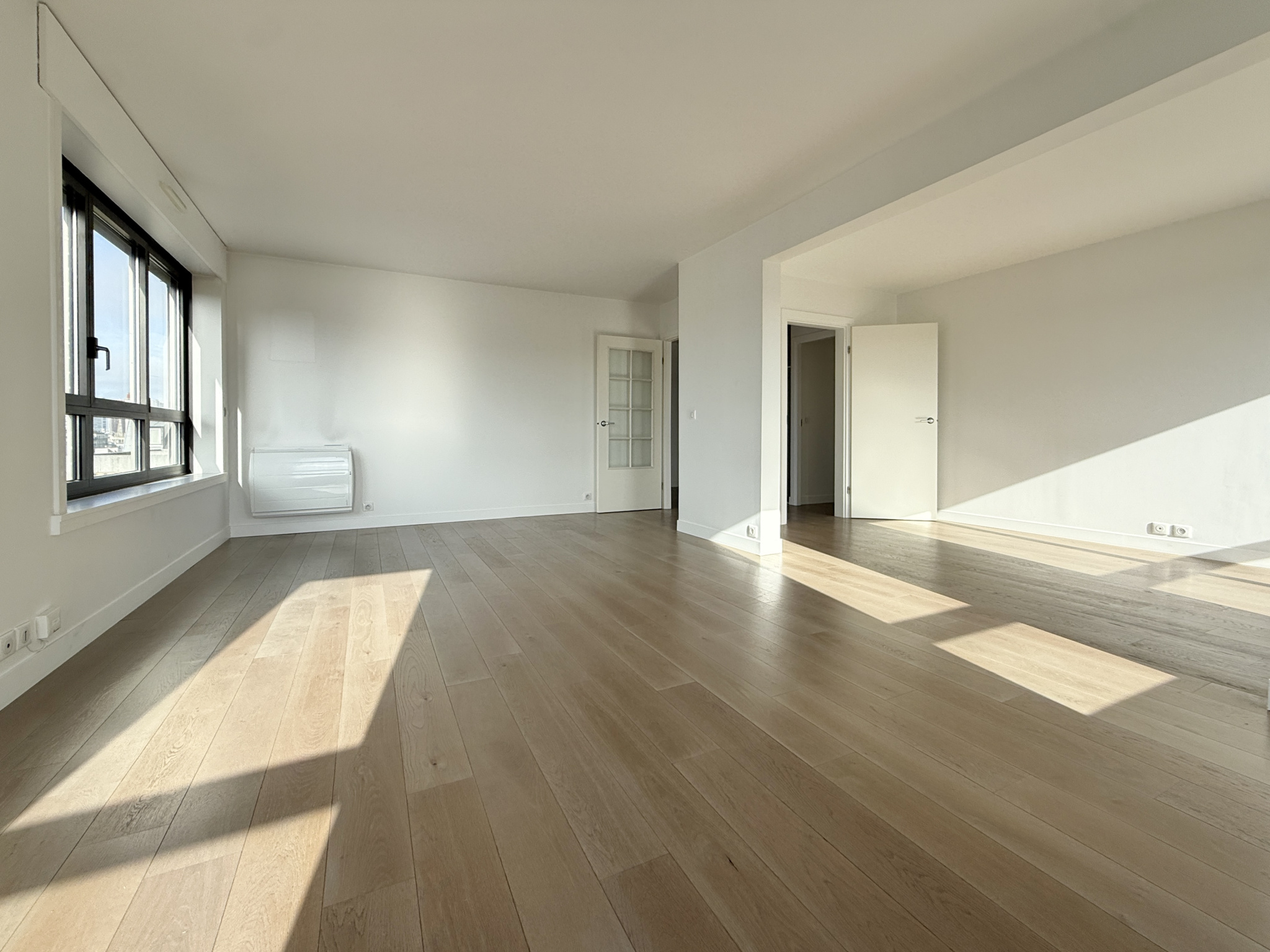 Entre les stations de Métro Commerce et Vaugirard - Rue Lecourbe- L'agence Quartiers Parisiens vous propose dans une une belle résidence moderne de standing, un appartement 4 pièces rénové de 88,2m2, situé au 9ème étage (dernier étage) avec ascenseur.Ce dernier se compose d'une entrée avec rangements intégrés, d'un double séjour, d'une cuisine à aménager et à équiper, de 2 chambres, d’une salle de bains, d’une salle d’eau, d’un wc. ; Une cave et un parking complètent ce logement.