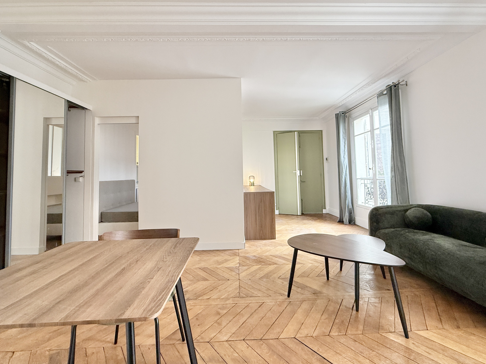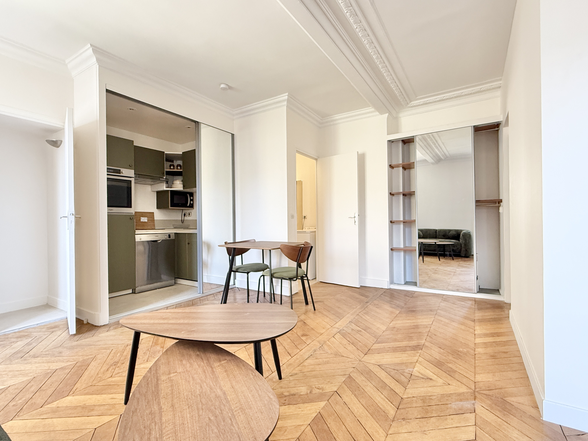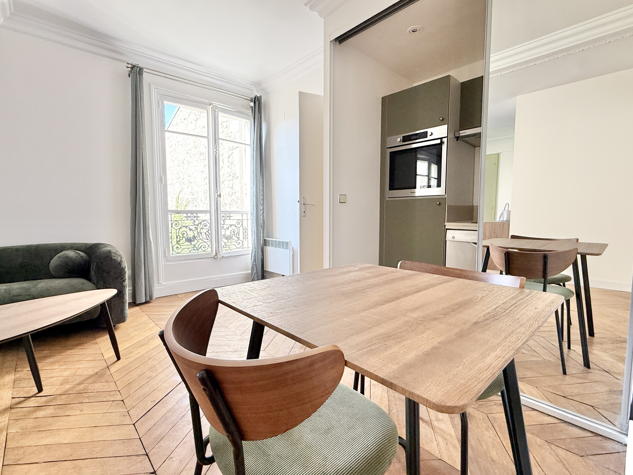À proximité immédiate du parc Monceau, au 5ᵉ étage avec ascenseur d’un bel immeuble en pierres de taille, l’agence Quartiers Parisiens vous propose ce charmant appartement meublé de 40,25 m², calme et lumineux.