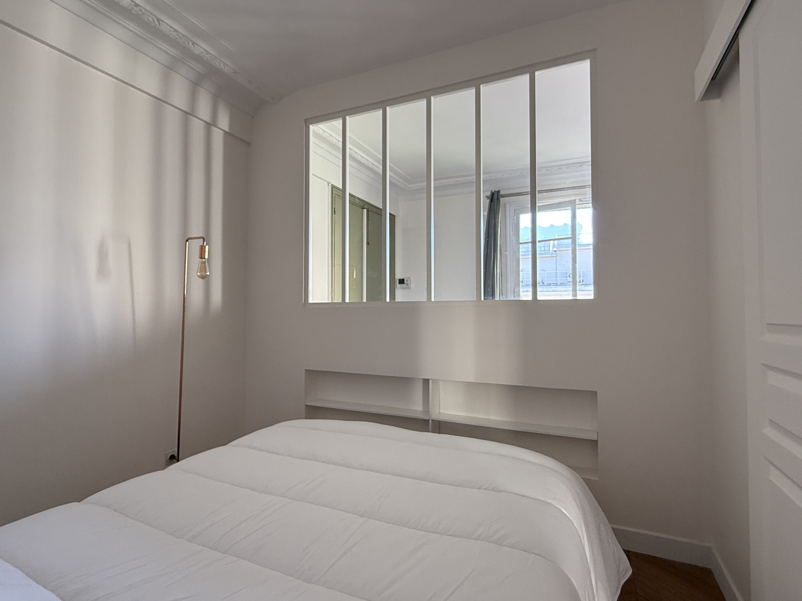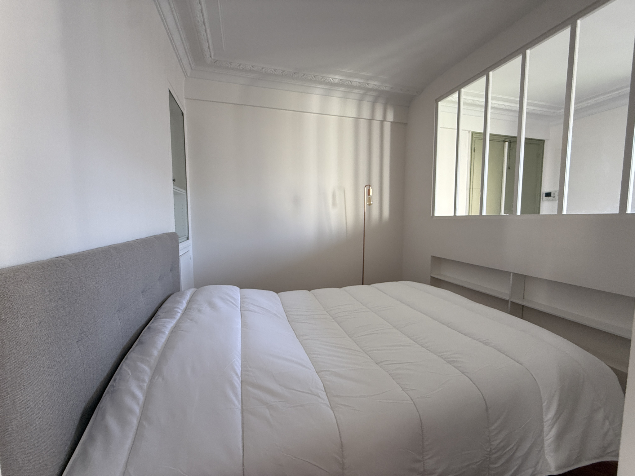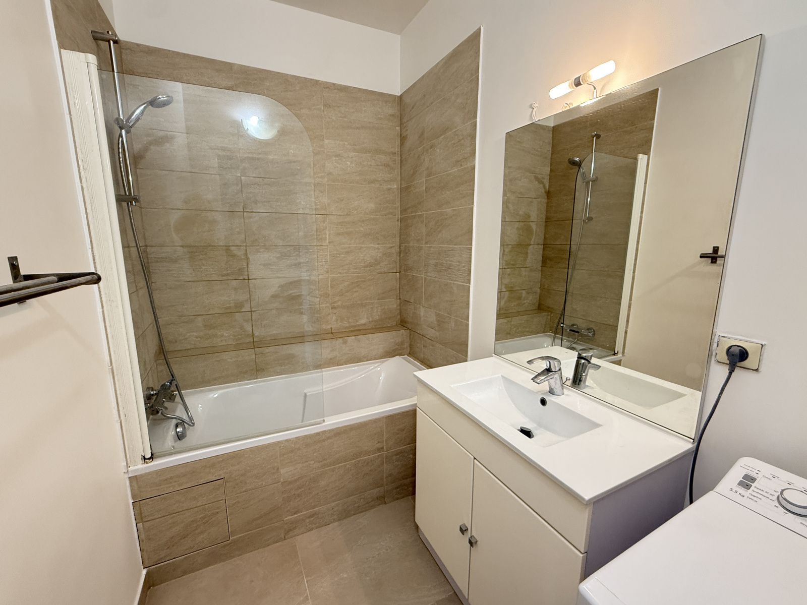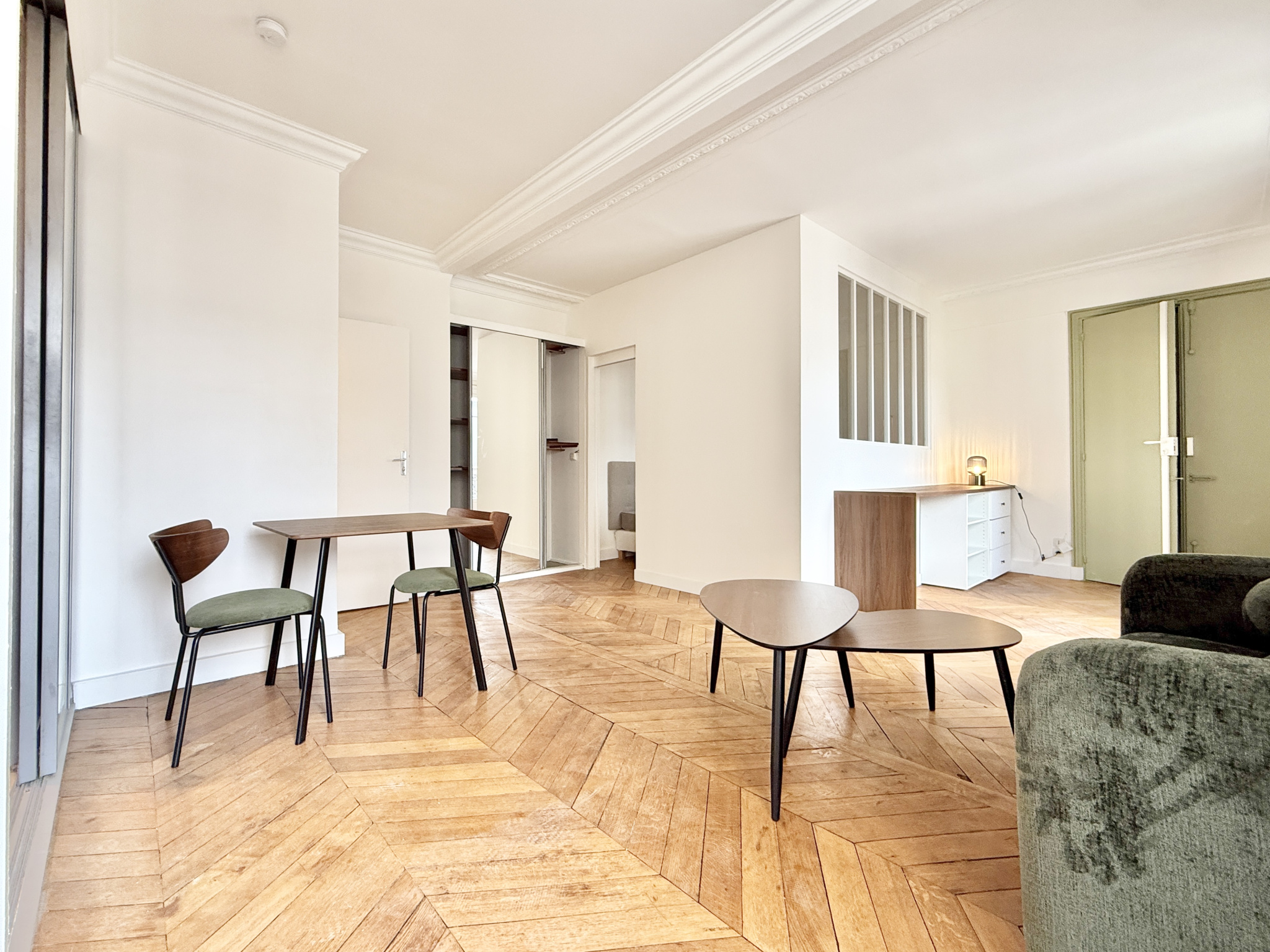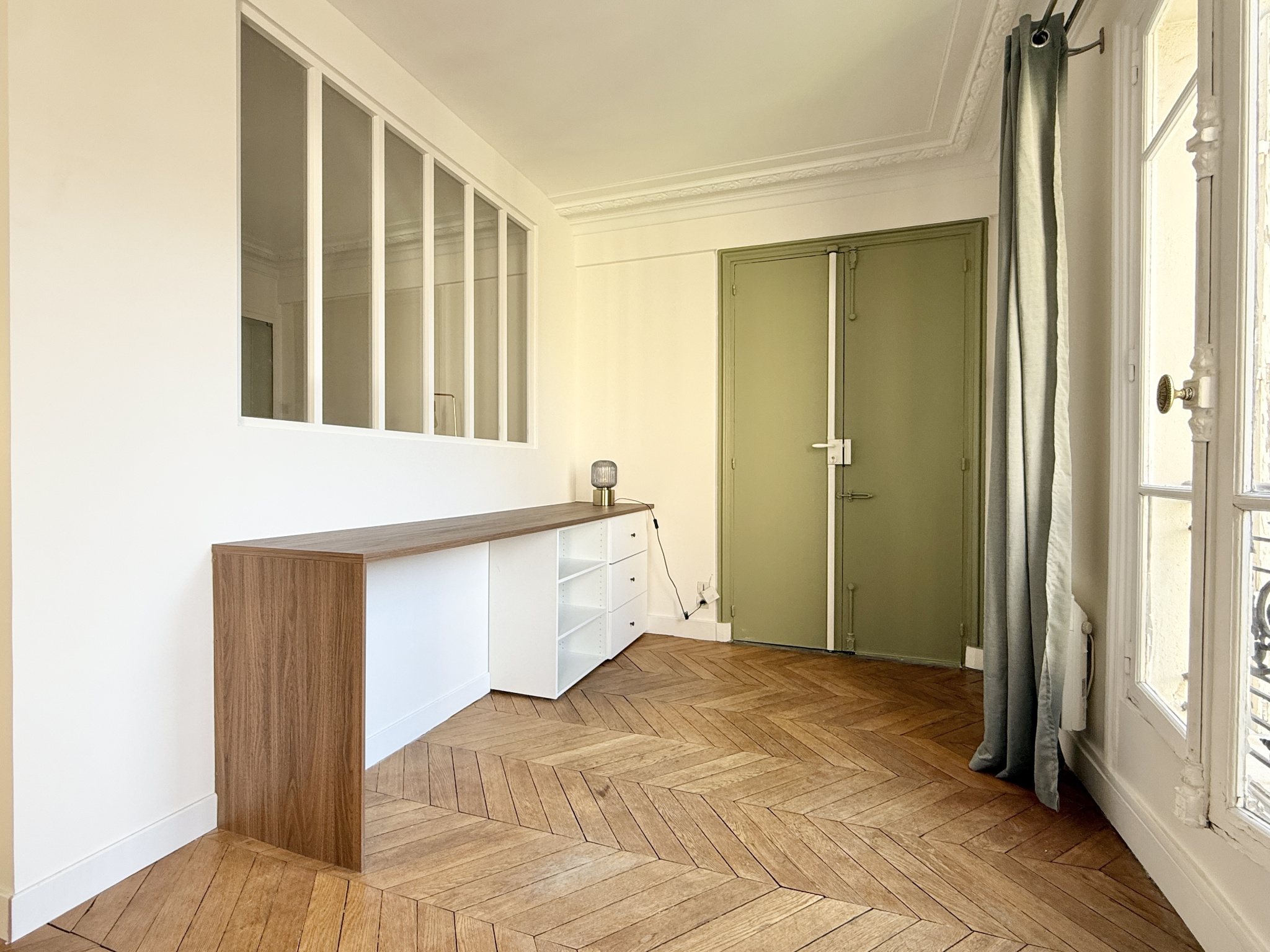 L'appartement se compose d’une entrée avec un coin bureau, d’un séjour avec rangements intégrés, d’une cuisine indépendante entièrement équipée, d’un coin nuit avec lit double (140x200 cm), d’une salle de bains avec lave-linge, et de WC séparés.