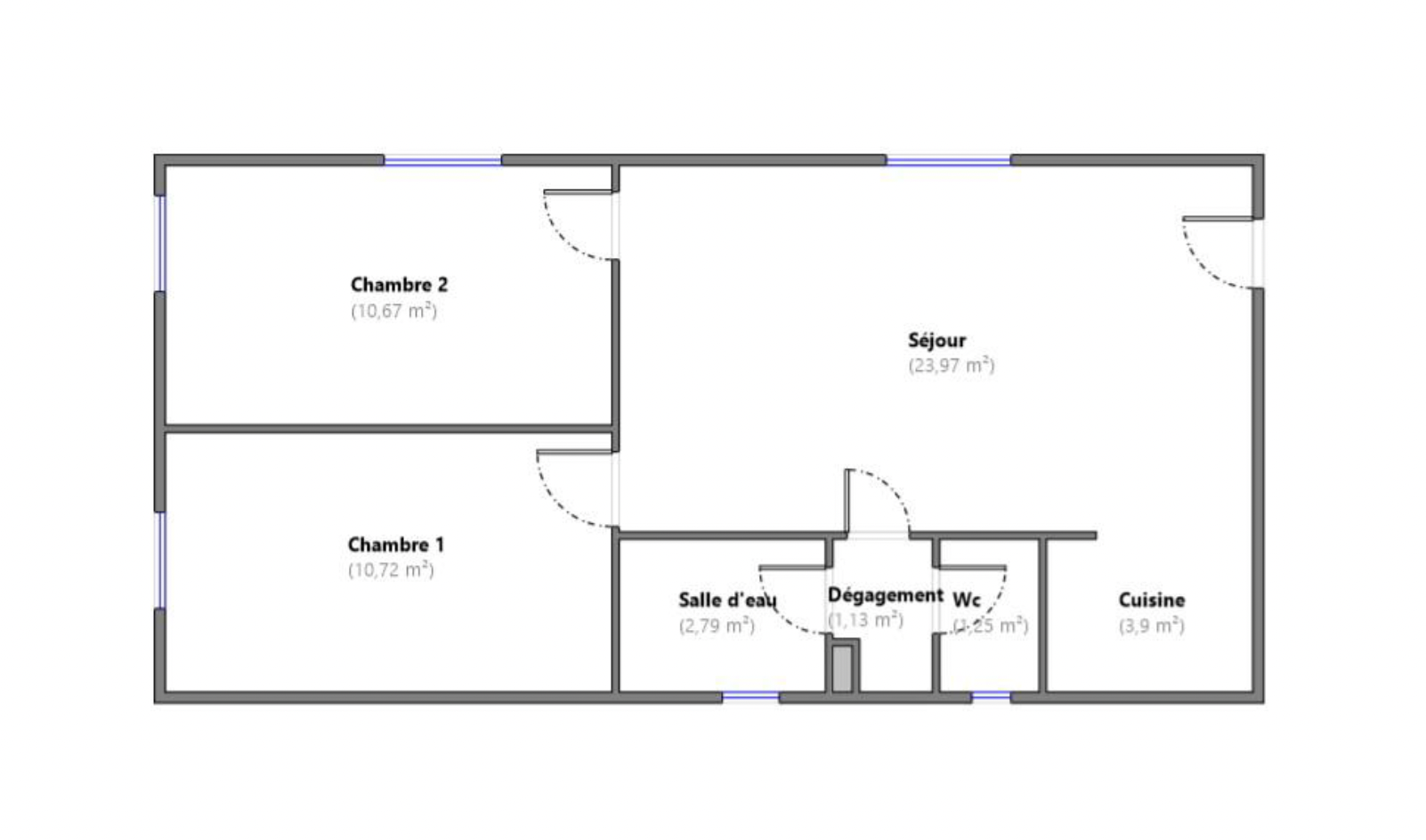 Il se compose d’un séjour lumineux avec cuisine ouverte, de deux chambres, d’une salle d’eau, de WC indépendants ainsi que d’un espace buanderie.